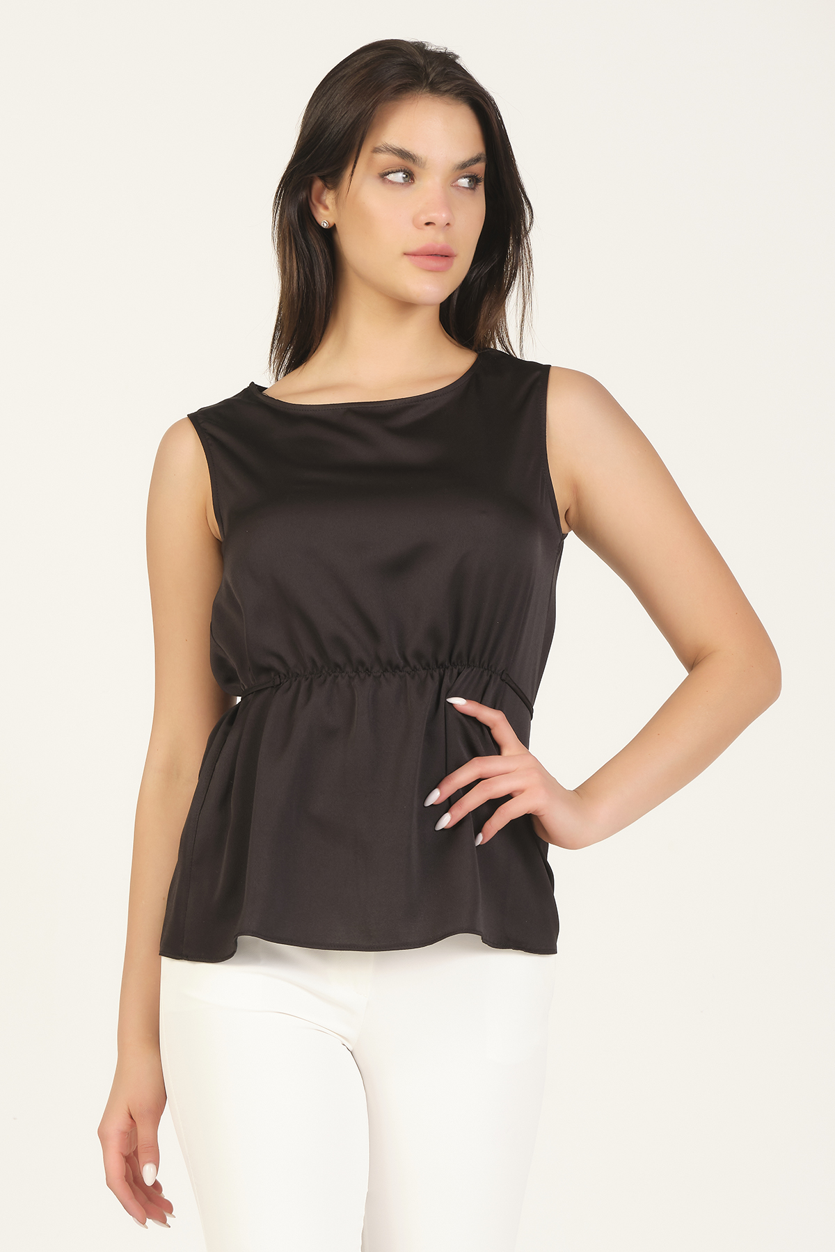 Satin Drawstring Waist Blouse