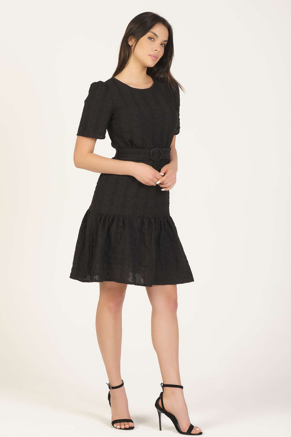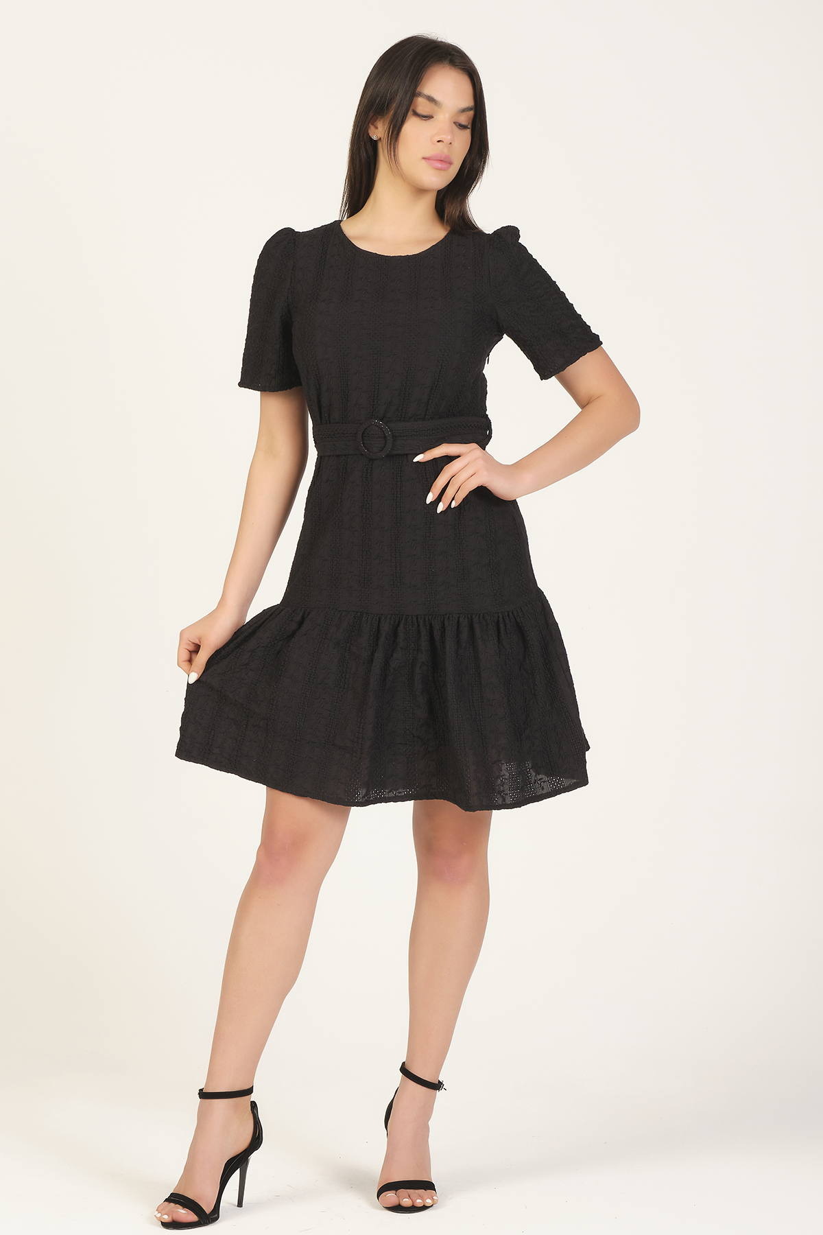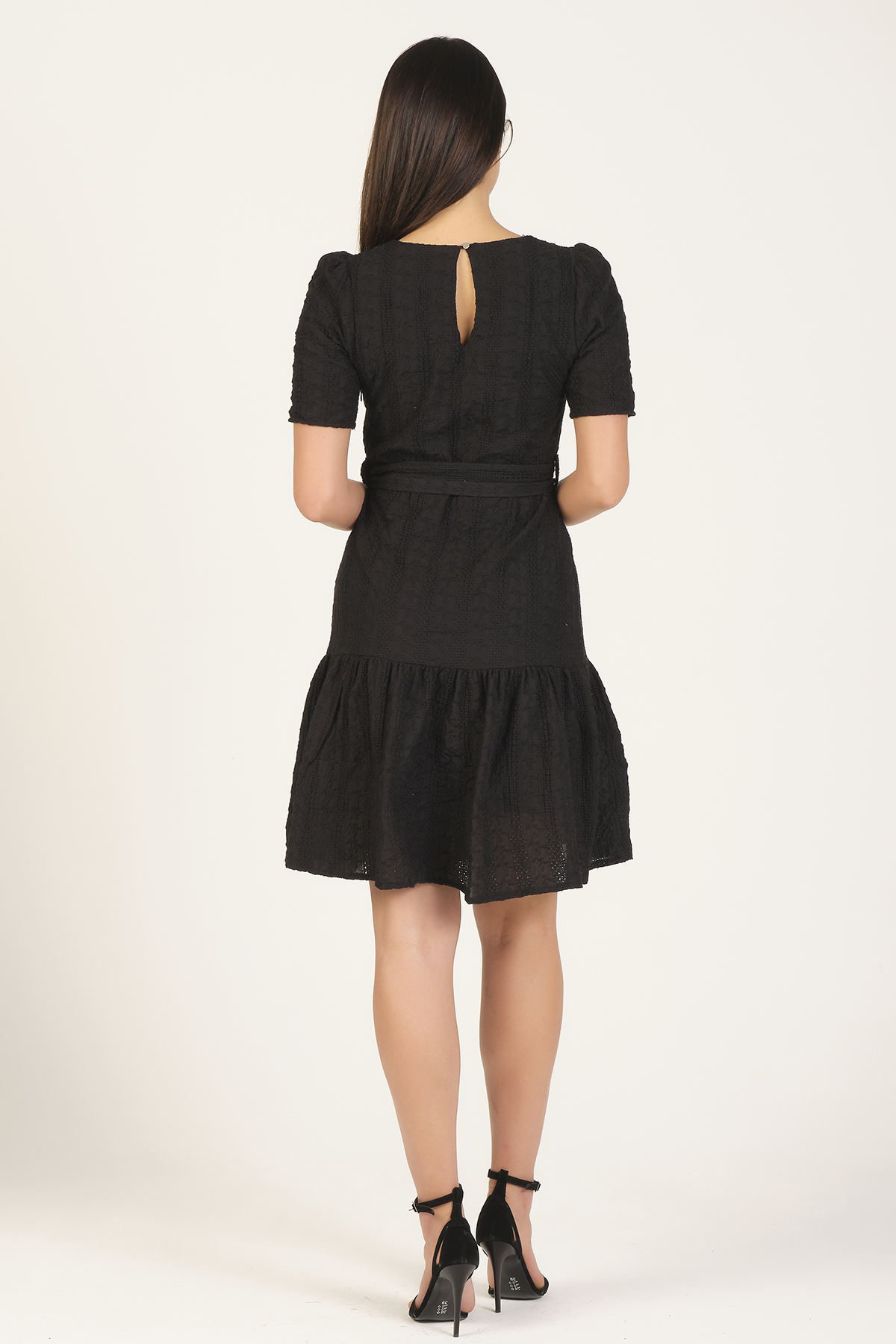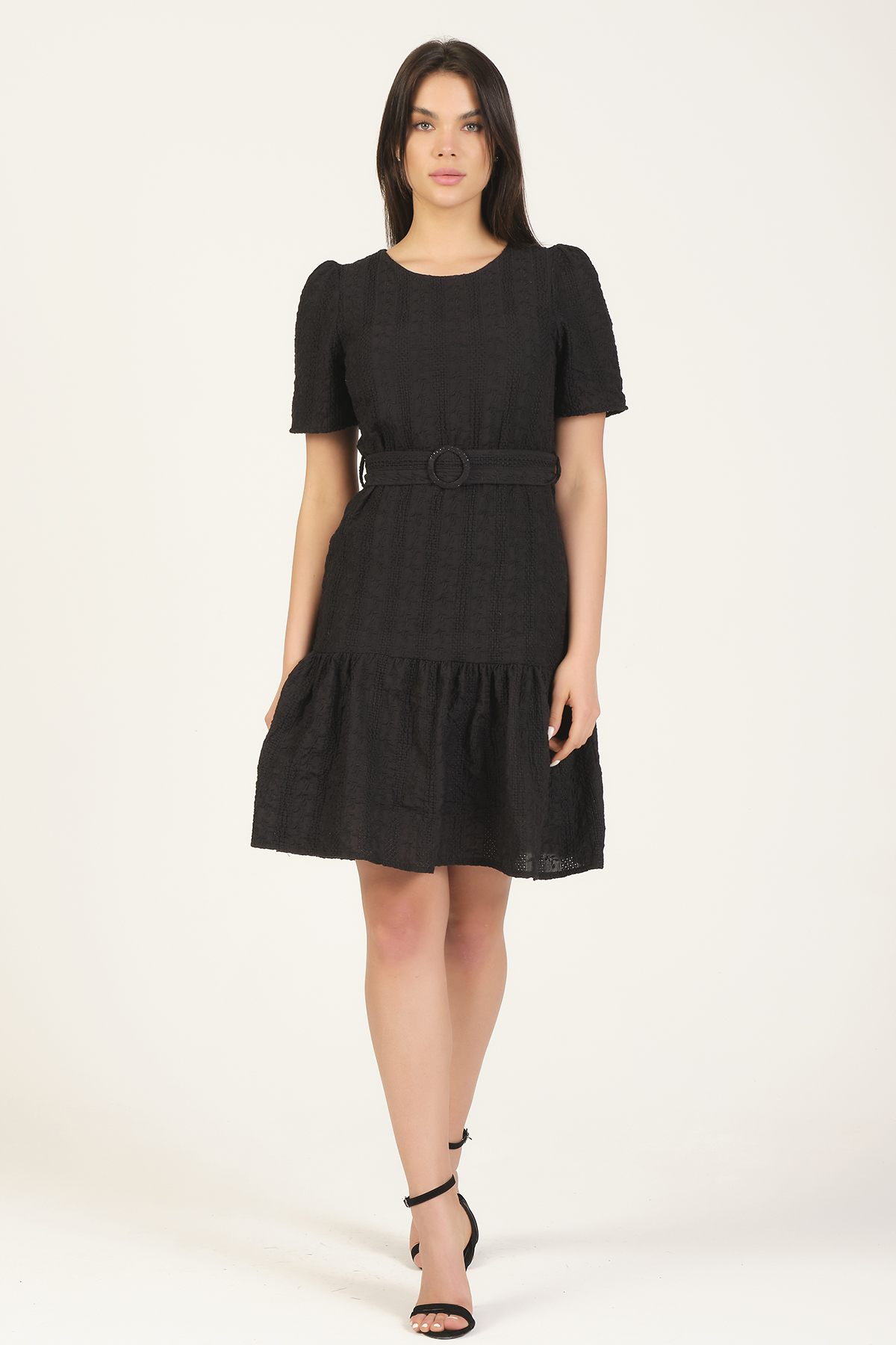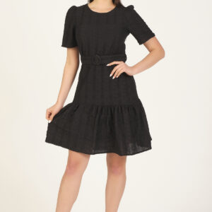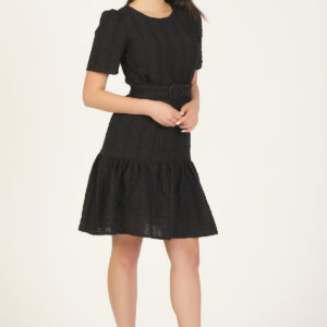 Scalloped Embroidered Dress With Belt